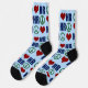 Peace Love Human Resources pattern socks for your favourite HR manager or rep.. A peace sign, heart, and the letters HR make a great gift for an office worker.