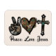 Add a touch of faith-filled inspiration to your home with our "Peace - Love - Jesus" magnet! This beautifully crafted magnet serves as a reminder of the core values of Christianity - peace, love, and the everlasting presence of Jesus Christ. Whether adorning your refrigerator, magnetic board, or any metal surface, this magnet spreads positivity and faith wherever it's placed.