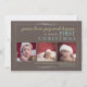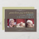 Holiday message reads 'peace love joy and kisses, it's <baby's> first christmas' in this very sweet design that's customised with your baby's name and features three photos. In sage green and teal on a trendy mocha brown background, it's playful, fun and definitely unique. Also available in a pink colour scheme for girls: