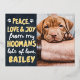 Peace Love & Joy Funny Modern Pet Custom Photo Foil Holiday Postcard