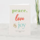 Peace Love Joy Modern Colourful Folded Holiday Car Card