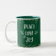 Peace Love Joy Modern Typography Gold Dots Green Two-Tone Coffee Mug