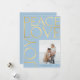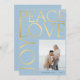 Elegant modern typography Peace Love Joy custom photo faux gold and light baby blue Christmas holiday card with your custom personalised text on both sides.