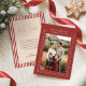 Send warm holiday wishes with this elegant family Christmas card featuring your favorite photo framed by a modern red border and playful line accents. The back showcases a chic candy stripe pattern for an extra festive touch. Perfect for sharing peace, love, and joy with family and friends this season. Customize your message and family name to make it truly yours today.