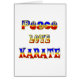 Share your love for karate with this shiny blue and red design saying Peace Love Karate.