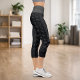 Take your yoga routine to the next level with these modern “Peace • Love • Leggings” graphic capri length leggings. The motivational charcoal text printed on black makes these simple, uplifting, and versatile enough for any style esthetic.