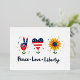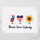 Invite your guests with positivity and patriotic style! 🎉🕊️ This invitation features a cute illustration of peace hand sign, heart, and sunflower — each decorated in creative red, white, and blue patterns. Underneath, playful text says “Peace • Love • Liberty” with scattered stars. Perfect for backyard BBQs, parades, family parties, or kids' July 4th events! 🇺🇸🎆