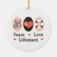 A peace symbol, heart and lifeguard ring in pink and dark brown on cute t-shirts, tees, clothing, buttons, stickers, stationery and more gifts for a lifeguard and his or her family. Click on the following link to see all of our cute Chrissy H.