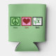 A peace sign, heart, and an integer underneath a square root sign for a math nerd. A cute geek gift for a mathlete.