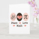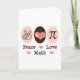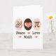 A peace symbol, heart and pi symbol on Peace Love Math t-shirts, tees, apparel and more math lover merchandise make a cute and hip gift for a math teacher, professor, mathlete or mathematician on Pi Day or Teacher's Appreciation week. Studios, LLC.