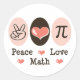 A peace symbol, heart and pi symbol on Peace Love Math t-shirts, tees, apparel and more math lover merchandise make a cute and hip gift for a math teacher, professor, mathlete or mathematician on Pi Day or Teacher's Appreciation week. Studios, LLC.