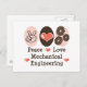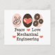 A peace symbol, heart and three mechanical gears in pink and dark brown with the words Peace Love Mechanical Engineering underneath it on mechanical engineer t-shirts, tees, apparel, clothing and more items that make a cute gift for a mechanical engineering professor, mechE major or grad. Click on the following link to see all of our Chrissy H.