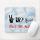 This mouspad is complete with a cloud and sky background and the standard Peace, Love, Music design.