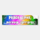 Colourful Peace, Love, and Norfolk Terriers bumper sticker really stands out on your car. Our dog lover stickers have a rainbow tie-dye background with bone, paw print, heart, and peace sign. Fun and thought provoking statement!