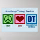 Peace Love OT poster gift for an occupational therapist. A peace sign, heart, and OT written in blue. Customize with your occupational therapy practice or name.