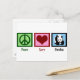 Adorable panda bear in a blue square next to a green peace sign and a red heart. I love this cute Christmas panda bears postcard. Beautiful animal card.