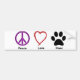 Peace, Love, Paws. It'a all a pet lover wants. Bumper Sticker
