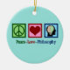 Peace Love Philosophy gift for a philosopher that majored in philosophical studies in college. Express your thoughts about our existence. A cute present for a philosophy major or professor. Features a peace sign, heart, and the human mind on a pretty teal present.