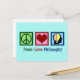 Peace Love Philosophy gift for a philosopher that majored in philosophical studies in college. Express your thoughts about our existence. A cute present for a philosophy major or professor. Features a peace sign, heart, and the human mind on a pretty teal present.