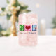 A cute phlebotomist gift featuring a peace sign, heart, and blood vials. Peace Love Phlebotomy can glass.