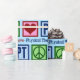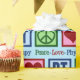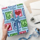 Cute physical therapist wrapping paper for Christmas gifts featuring a peace sign, heart, and PT. Peace Love Physical Therapy gift wrap.