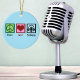 Peace Love Podcasts. A cute podcast lover gift for a podcaster who makes radio shows. It features a peace sign, heart, and pair of headphones with a microphone.