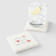 The coasters are gorgeous, a quality feel and heavy weight. They look like a precious archeological find. A rustic stone juxtaposed with a modern floral black and white print. I like the way the print goes slightly imperfect on the cut stone edges giving them a kind-of natural beauty.