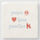 Add some doggy style to your home while protecting your coffee table, end tables, nightstand or any other furniture from condensation rings left behind by cold beverages and pay tribute to your favourite canine companion at the same time with a Peace Love and Poodle stone coaster.