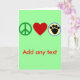 A big peace symbol, a big red heart, and a puppy paw. Peace love and doggies! or peace love and puppies. However you want to read it , it means you love dogs! You can customise this product any way you like. Add more text, move elements around, make the images larger or smaller.