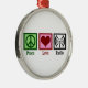 A peace sign, heart, and a radio transmitter picture. Great Peace Love Radio ornament Christmas gift for a deejay.