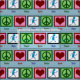 Peace signs, hearts, and running figures. A cute athlete's fabric for gifts for marathon runners or track stars.
