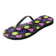 Express peace, love and happiness with this colourful pattern on customisable black flip flops. This design has a purple peace symbol, pink heart and a happy face. Inspire others with this whimsical pattern!