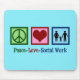 Peace Love Social Work present. A cute social worker Christmas gift featuring a family holding hands next to a peace sign and heart. A nice design for social services.