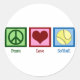 Peace Love Softball Classic Round Sticker