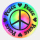 Peace & Love sticker - peace sign and hearts on a rainbow spiral background.