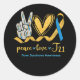 Peace Love T21 Blue Yellow Ribbon Down Syndrome Classic Round Sticker