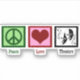 Perfect theatre sticker for an actor who loves the performing arts. A cute drama club present. Peace Love Theatre.
