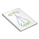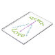 The words Peace, Love, Tranquillity, Kindness and Patience, printed on a Notebook.