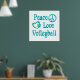 Share your love for Volleyball and have some retro fun with a peace sign, heart and flower and the words - Peace Love Volleyball. Makes a great gift.
