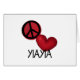 Peace Love YiaYia, what else is there? Available on bodysuits, tees, long sleeve tees, mugs cards, magnets, stickers, buttons, keychains, tote bags and more What a Great gift for the new baby or toddler.