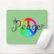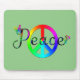Rainbow peace sign typography design with butterflies and swirls of colour.