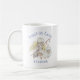 A sweet pastoral mug. Designed with a serene angel with yellow wings holding a shepherds crook. Sitting beside 2 white fluffy lambs. Text says: Peace on Earth, along with your personalised name.
