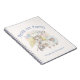 A sweet pastoral notebook journal. Designed with a serene angel with yellow wings holding a shepherds crook. Sitting beside 2 white fluffy lambs. Watercolor splatters around the image blending into an eggshell white background. Text says: peace on earth. Personalise with a name or other text.
