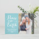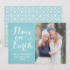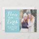 Peace on Earth Beautiful Script Aqua Photo Holiday Card