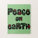 Cute and meaningful Christmas themed graphic with red and green accented peace signs in each letter. Wishing Peace on Earth... on Christmas and everyday.
