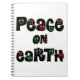 Cute and meaningful Christmas themed graphic with red and green accented peace signs in each letter. Wishing Peace on Earth... on Christmas and everyday.