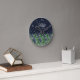 A forest of christmas trees and a starry night sky are the backdrop for the text, "Peace On Earth", on this holiday themed numbered wall clock.