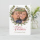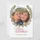 Peace on Earth Christmas holiday photo card features a wreath with holly berries, text and banner that reads Peace on Earth Be Good to One Another, red text that reads Merry Christmas, an area you can easily add a photo and your name! The back is olive green with the Peace on Earth text in white. Simple yet elegant. Photography © Storytree Studios, Stanford, CA