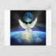 A white Dove of Peace spreads its wings over Planet Earth as the sun rises above Earth's horizon with the Moon in the background. A starry sky and the bright blue glow of the world as seen from space is a beautiful image of Peace for Christmas, Earth Day, or the New Year, or to use as a Christian symbol of the Holy Spirit of God.