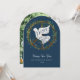 Original illustration and hand lettering by Becky Nimoy; Dove over peace sign wreath. Customise with a photo to the back. On the invitation template so you can use the arch die cut shape. (die cut is optional)